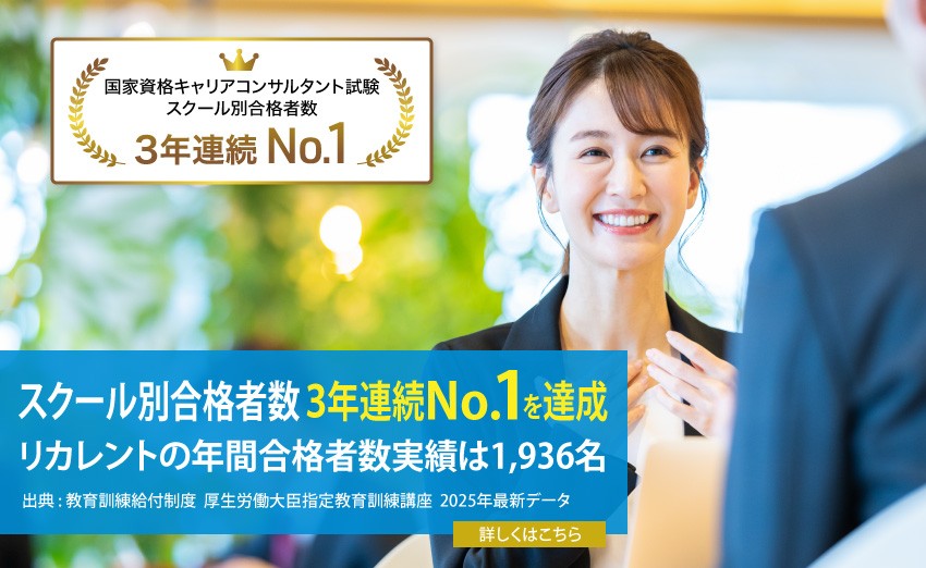 国家資格 キャリアコンサルタント試験 スクール別合格者数 リカレントは3年連続No.1を達成。2025年発表の年間合格者数は1,936名