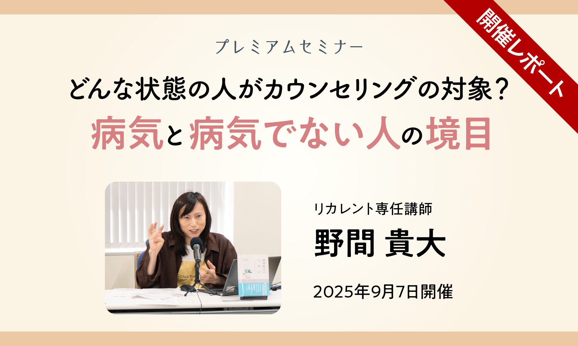 リカレントプレミアムセミナー開催レポート 『どんな状態の人がカウンセリングの対象? 病気と病気でない人の境目』(2025年9月7日開催)